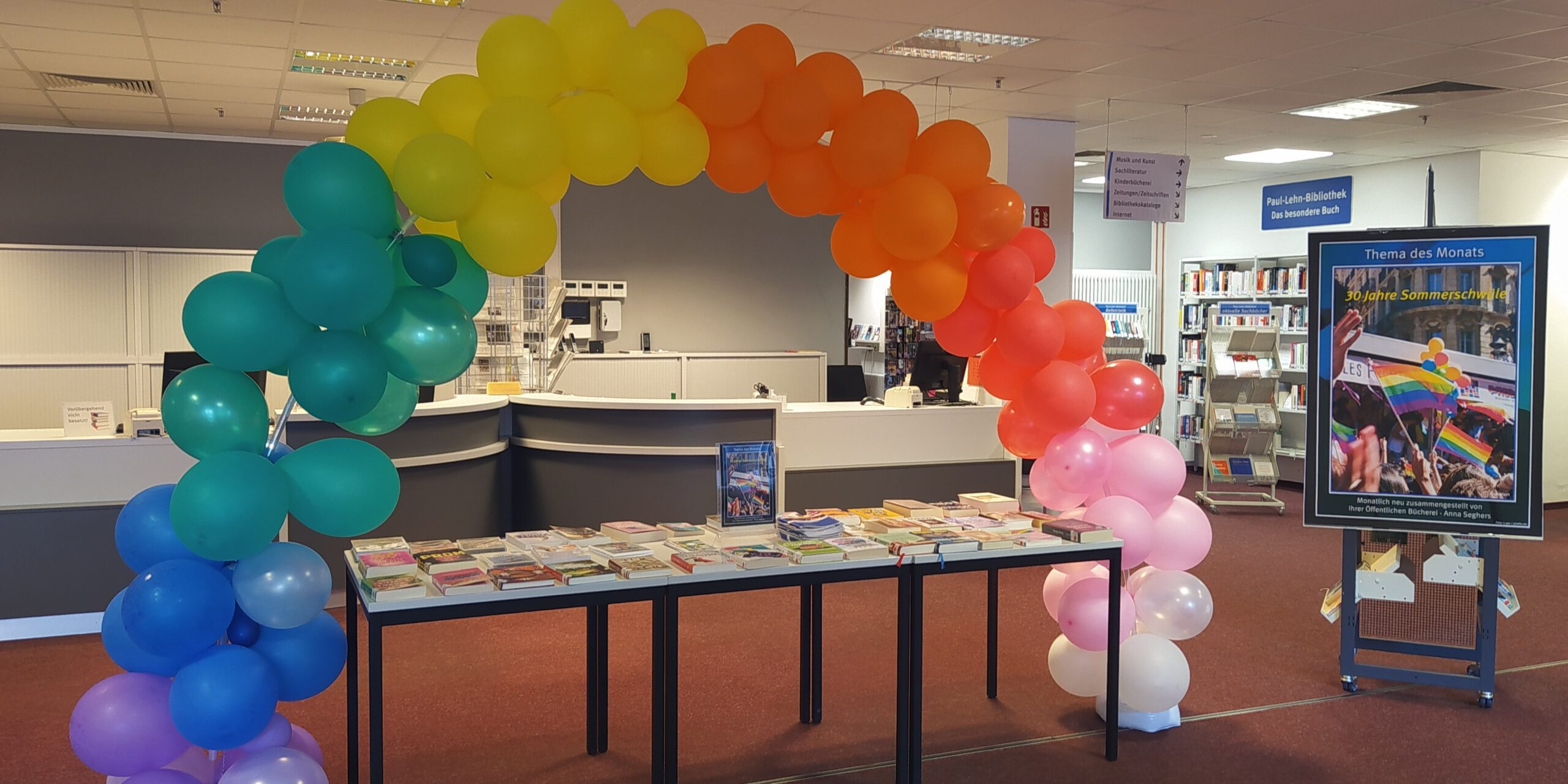 Die Öffentliche Bücherei der Stadt Mainz präsentiert anlässlich des CSD Mainz wieder queere Bücher, Hörbücher und DVDs aus ihren Beständen auf einem Büchertisch im Eingangsbereich. Alle Medien können sofort ausgeliehen werden. Zudem hat die Bücherei eine aktualisierte Literaturempfehlungsliste herausgegeben.
