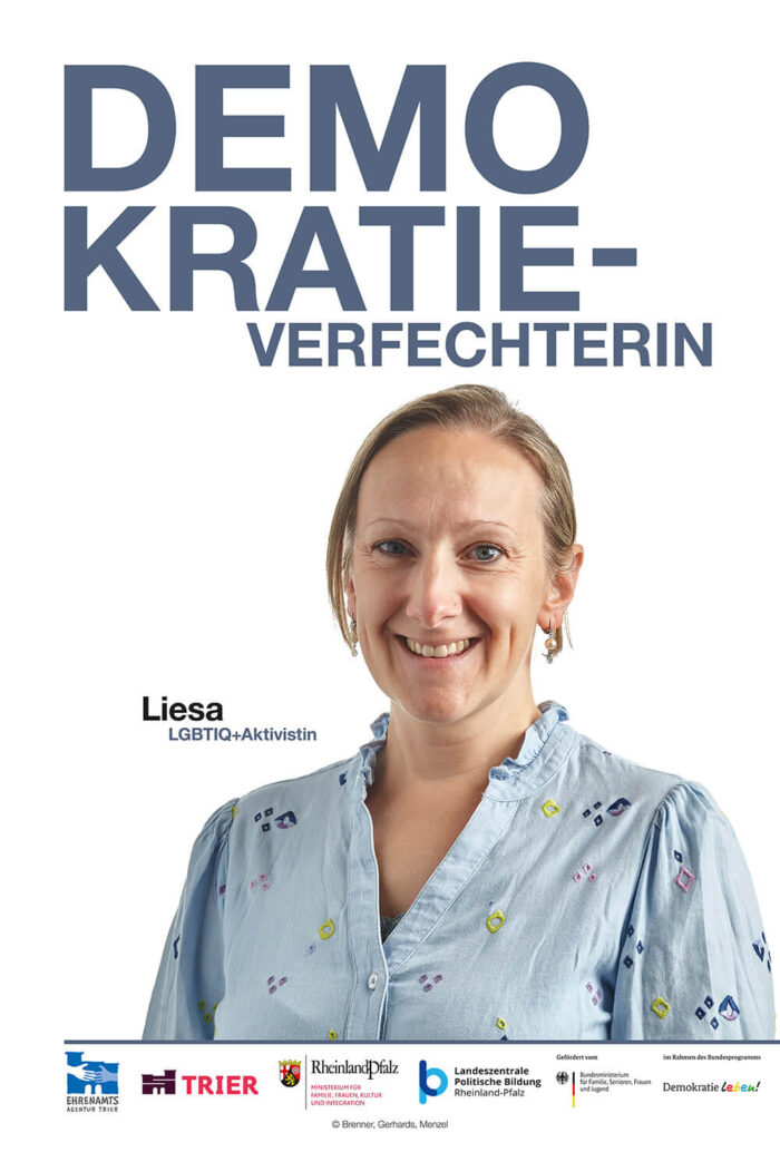 Aus der Region Trier haben sich Personen aus der queeren Community und ehrenamtlichen Arbeit an der Kampagne „Demokratie – Akzeptanz-Vielfalt“ beteiligt. Georg, Gründungsmitglied SCHMIT-Z e.V. und Mitglied der Gruppe „Oase“: „Ich war sehr froh über die Möglichkeit, mich mit Deutlichkeit zur Demokratie zu bekennen. Mir wird immer klarer, wie wenig selbstverständlich es ist,…