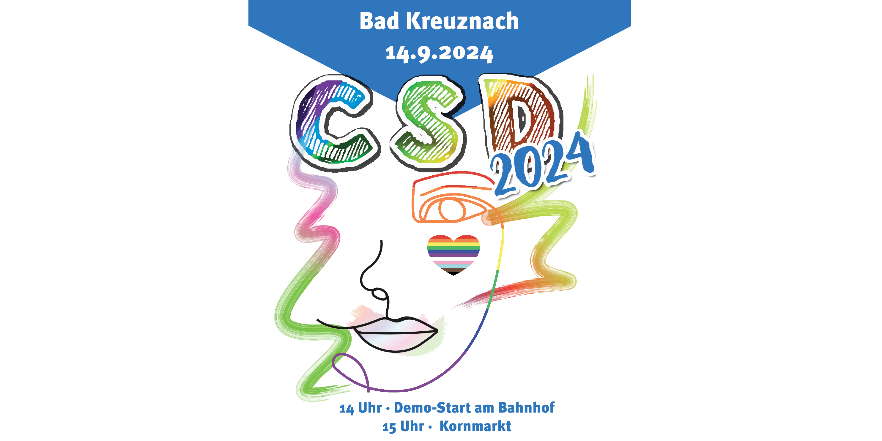 Schon zum sechsten Mal findet am 14.09. ein CSD in Bad Kreuznach statt. Los geht’s um 14 Uhr mit der Demo, die am Europaplatz (nahe Bahnhof) startet. Sie endet gegen 15 Uhr am Kornmarkt, wo euch Infostände und ein Bühnenprogramm erwarten.