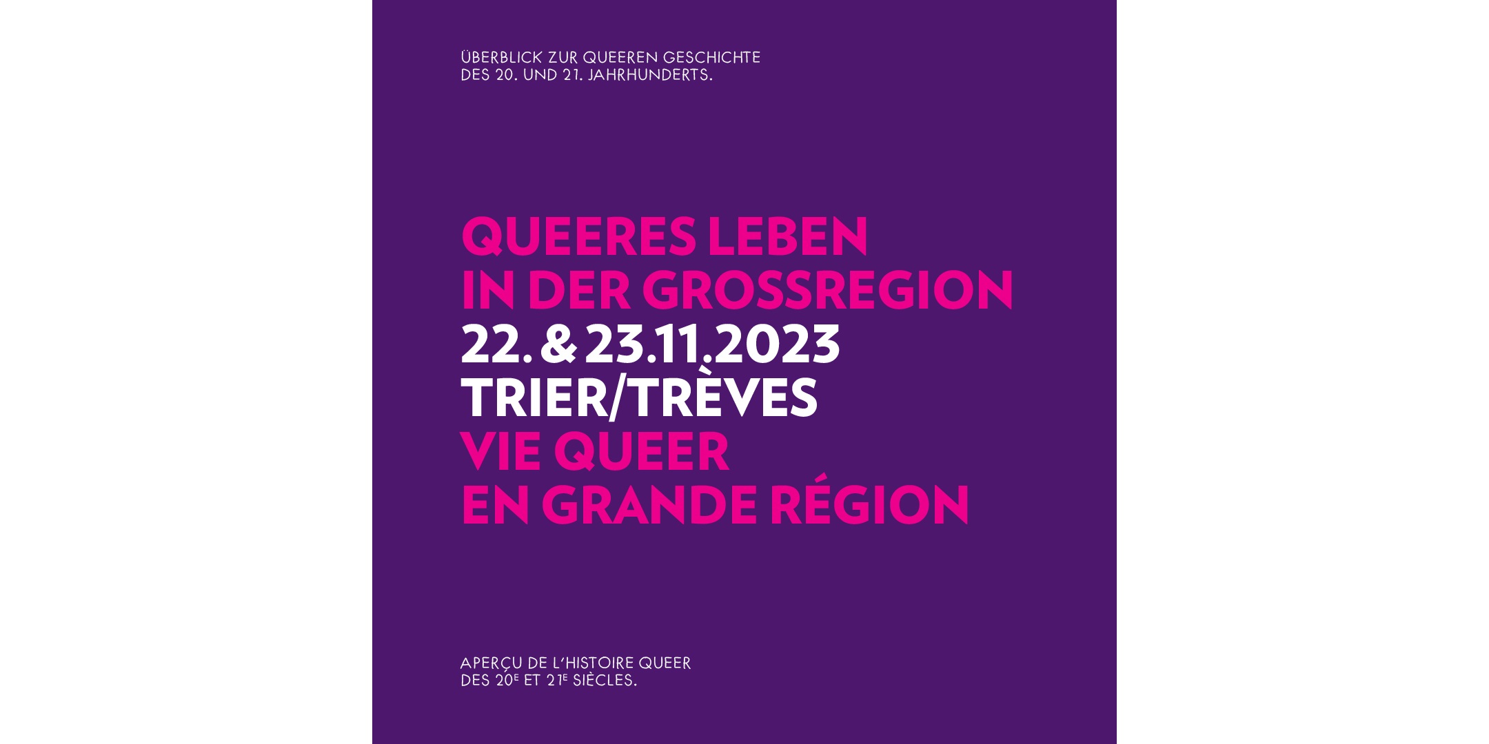 Im Zentrum Europas zwischen Deutschland (Saarland, Rheinland-Pfalz), Frankreich (Lorraine), Luxemburg und Belgien (Wallonie, Fédération Wallonie-Bruxelles, Deutschsprachige Gemeinschaft) gelegen, bildet die Großregion einen internationalen Kooperationsraum von 11,7 Millionen Einwohnern. Ihre queere Geschichte ist vielfältig.